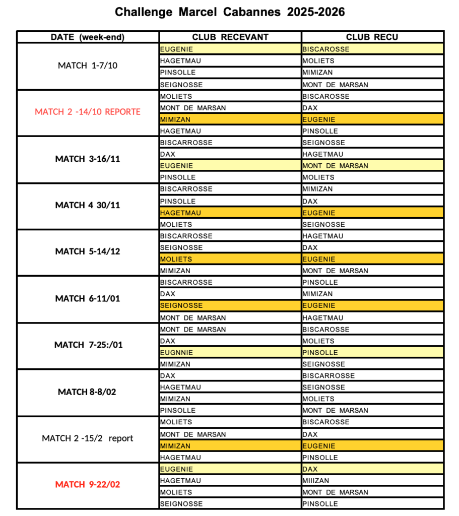 1ère date : Jeudi 7 Avril Déplacement à Mimizan